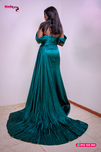 Com um decote direito elegante e sem exageros, este vestido oferece uma sofisticacao discreta. O brilho sutil na parte inferior adiciona um toque de glamour sem ser excessivo, enquanto o tule traz uma leveza encantadora a peca. Sem decotes exagerados ou rachas, voce pode desfrutar de conforto e confianca em qualquer ocasiao