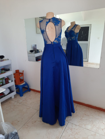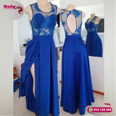 Uma escolha elegante e sofisticada para qualquer ocasião especial. Com detalhes em rosas costurados à mão sobre uma renda transparente, este vestido combina a delicadeza da renda com a beleza das flores, criando um visual verdadeiramente deslumbrante. Os brilhos leves adicionam um toque de glamour sutil, enquanto a racha bem acentuada confere um toque de ousadia e elegância